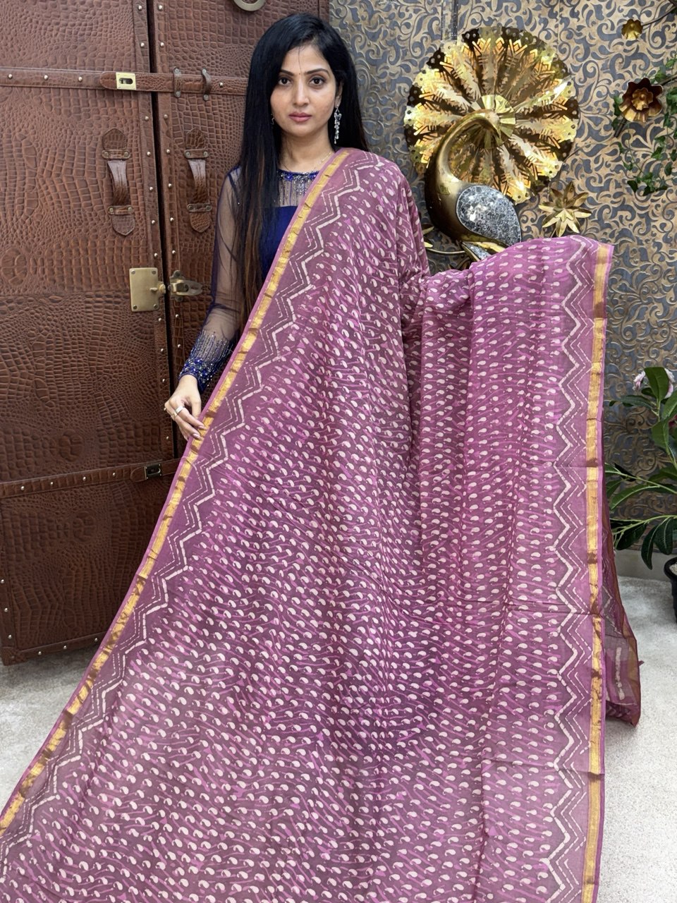 Cotton With (Bagru Dabu Print Saree)