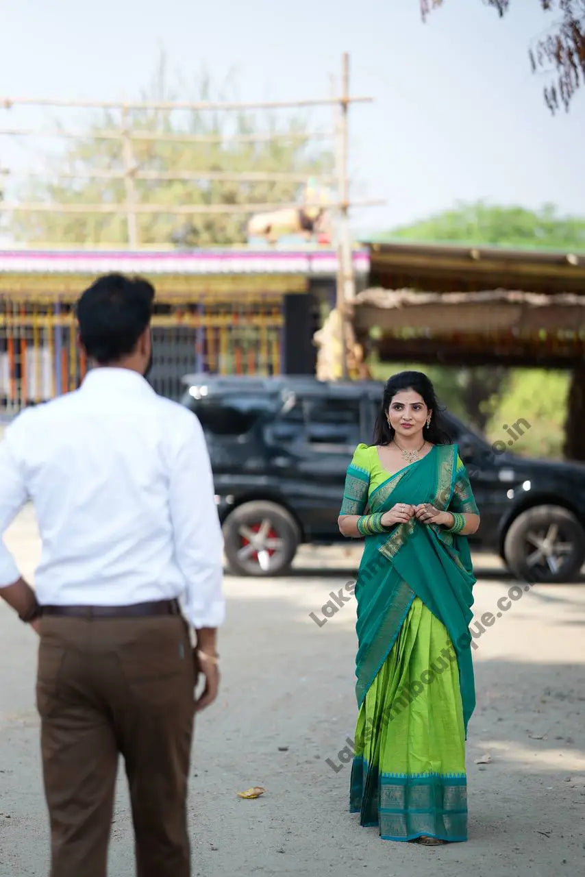 Half Saree ( Unstitched)Skirt - 4.5 Metres ( Fabric Cotton )Dupatta - 2.5 Metres ( Fabric Georgette )Blouse - 1... Read more